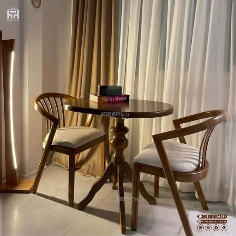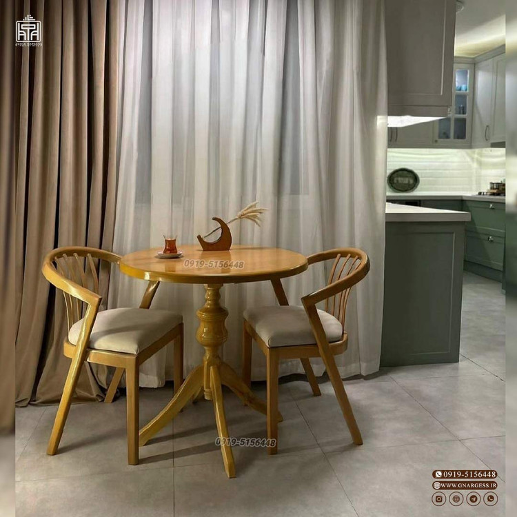 نوع ست : میز 2 نفره گرد آرزو + 2 عدد صندلی چوب توسکا