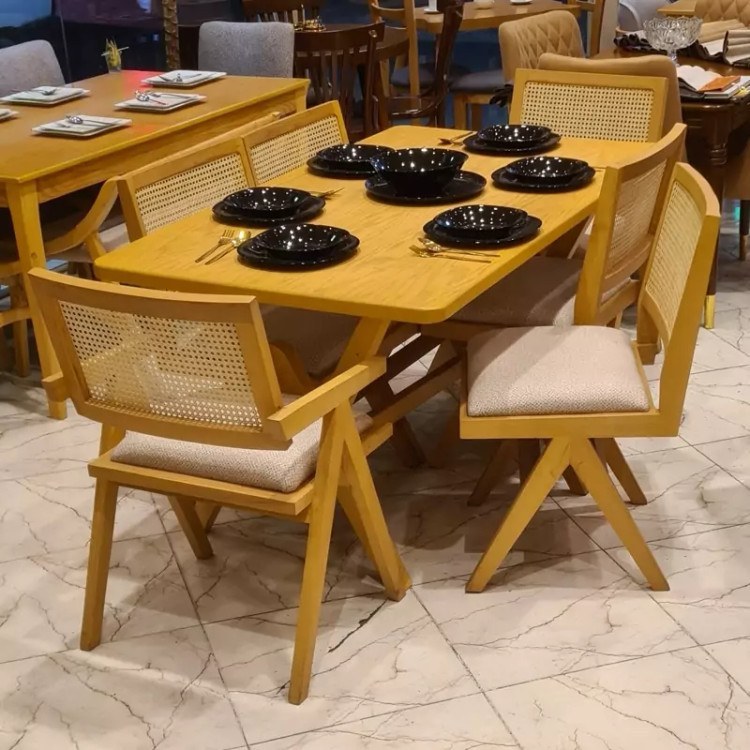 میز و صندلی ناهار خوری 6 نفره مدل مینرال ⭕️نکتهی مهم : این مدل کار شرکتی است 🟢جنس صفحه میز: MDF روکش بلوط 🟢جنس پایه میز : چوبه روسی 🟢پایه میز به صورت کلاف است و صفحه روی آن قرار میگیرد 🟢ابعاد صفحه میز: 160×90 سانتیمتر 🔴جنس چوبه صندلی: صددرصد چوبه راش گرجستان 🔴پشت صندلی ها حصیر بامبو بافته شده است 🔴پارچه : به دلخواه مشتری عزیزمون هم رنگ هم جنس پارچه قابل تغییره 🔴رنگ چوب : خود رنگ 🔴جنس اسفنج نشیمن: 20 کیلویی ویژه 🟣برای تغییره رنگه چوب و پارچه 10 الی 14 روز کاری زمان لازمه 🟣هزینه پسکرایه و باربری و اسنپ به عهده مشتری عزیز میباشد🌹❤️ رضایت شما هدف ماست