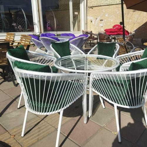 میزصندلی مدل باغی رنگ فلز مشکی وسفید
