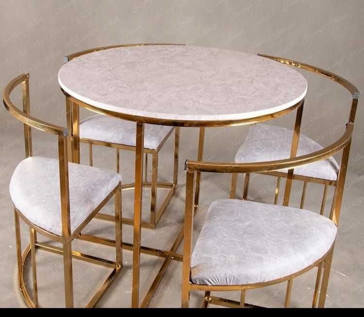 میزوصندلی ناهارخوری مدل کمجافلزی 4نفره دردورنگ کروم وانتیک 7روزکاری